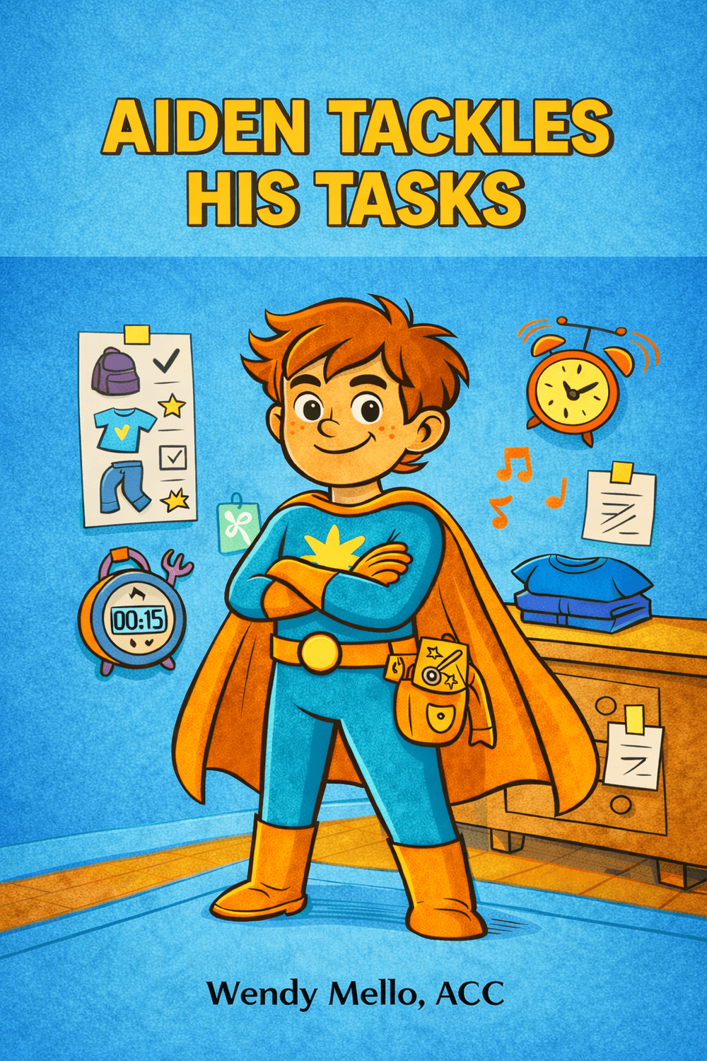 Aiden Tackles His Tasks is an SEL coloring and activity book that supports kids with high energy and busy minds as they build confidence, self-awareness, and everyday life skills.